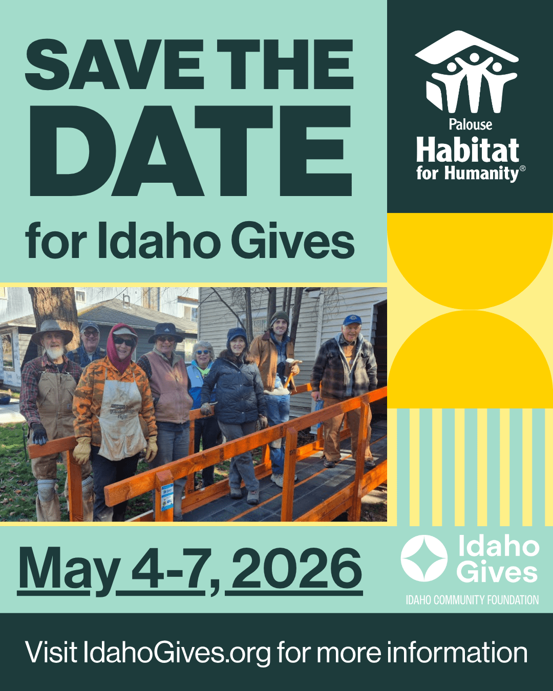 Idaho Gives is a statewide online giving event, and this year we’re raising funds for our Ramps & Rails program, helping neighbors stay safe and independent in their homes. Our goal is to raise $4,000 to build and repair ramps, steps, and handrails—small projects that make a big difference in everyday life.