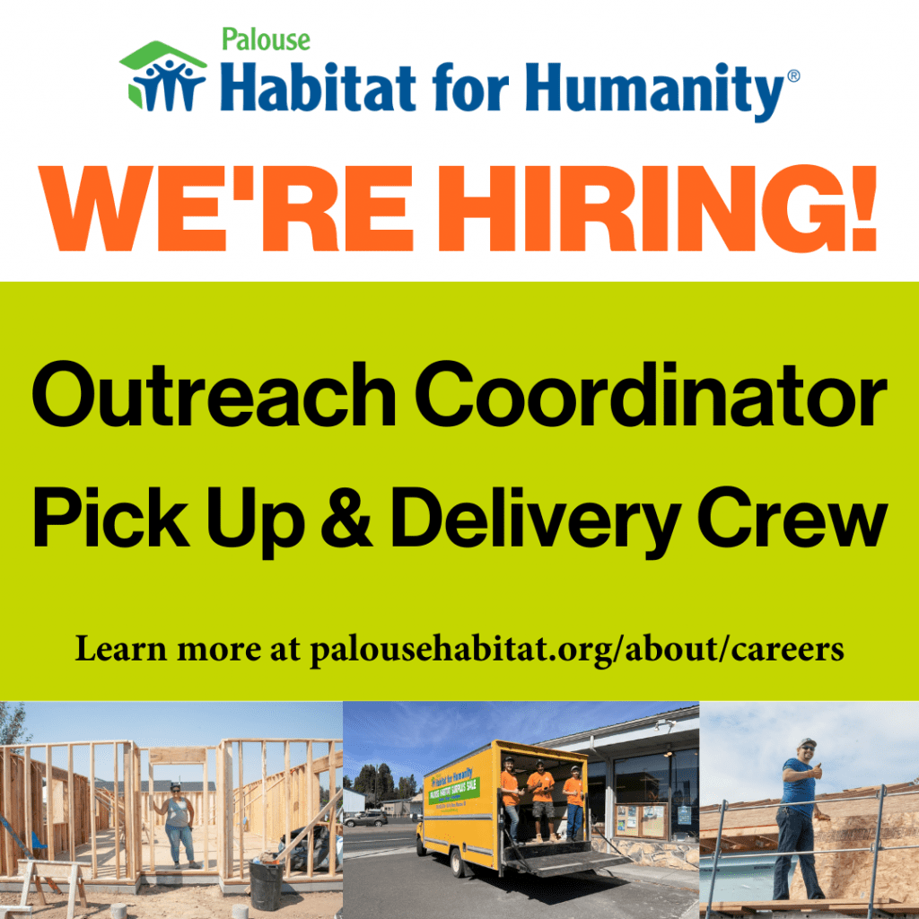 Palouse HFH is currently hiring. Visit the Careers page for more information and job descriptions. Outreach Coordinator Pick up and Delivery Crew