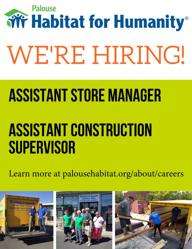 Please visit palousehabitat.org and click on Careers for more information. If you have any questions, please email director@palousehabitat.org for more information.