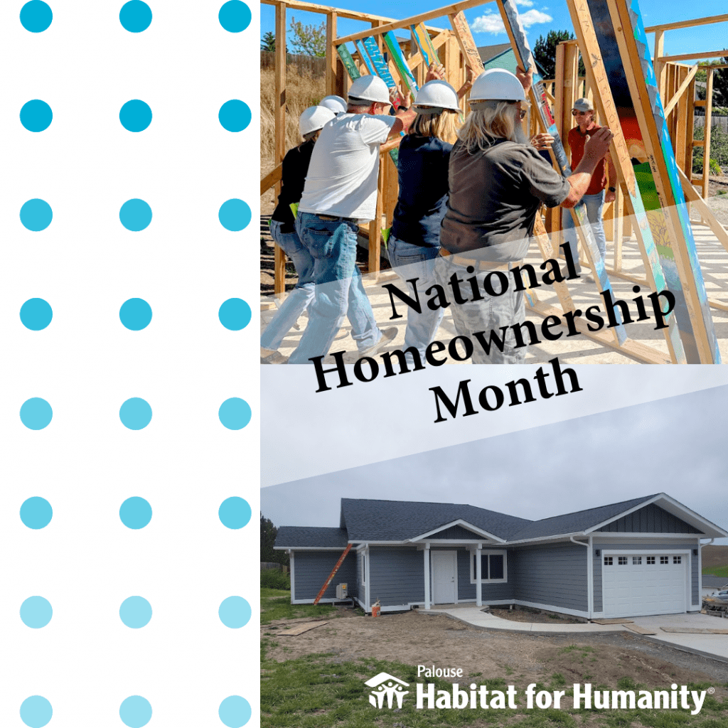 Happy National Homeownership Month! Join us every Sunday as we celebrate the joy and benefits of homeownership. Your support helps us build homes, community, and hope. Donate or sign up to volunteer today to make a lasting impact in our community. #blairhome #costofhome #palousehabitat #habitatforhumanity Habitat Homes on the Palouse