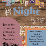 Join us for a creative evening in the Palouse Habitat Workshop at Decoupage Night with Nita! Learn simple decoupage techniques and create something beautiful to take home. Whether you’re a seasoned crafter or trying something new, this workshop is a great way to unwind and have fun while supporting Habitat. Event Details 📅 Monday, March…